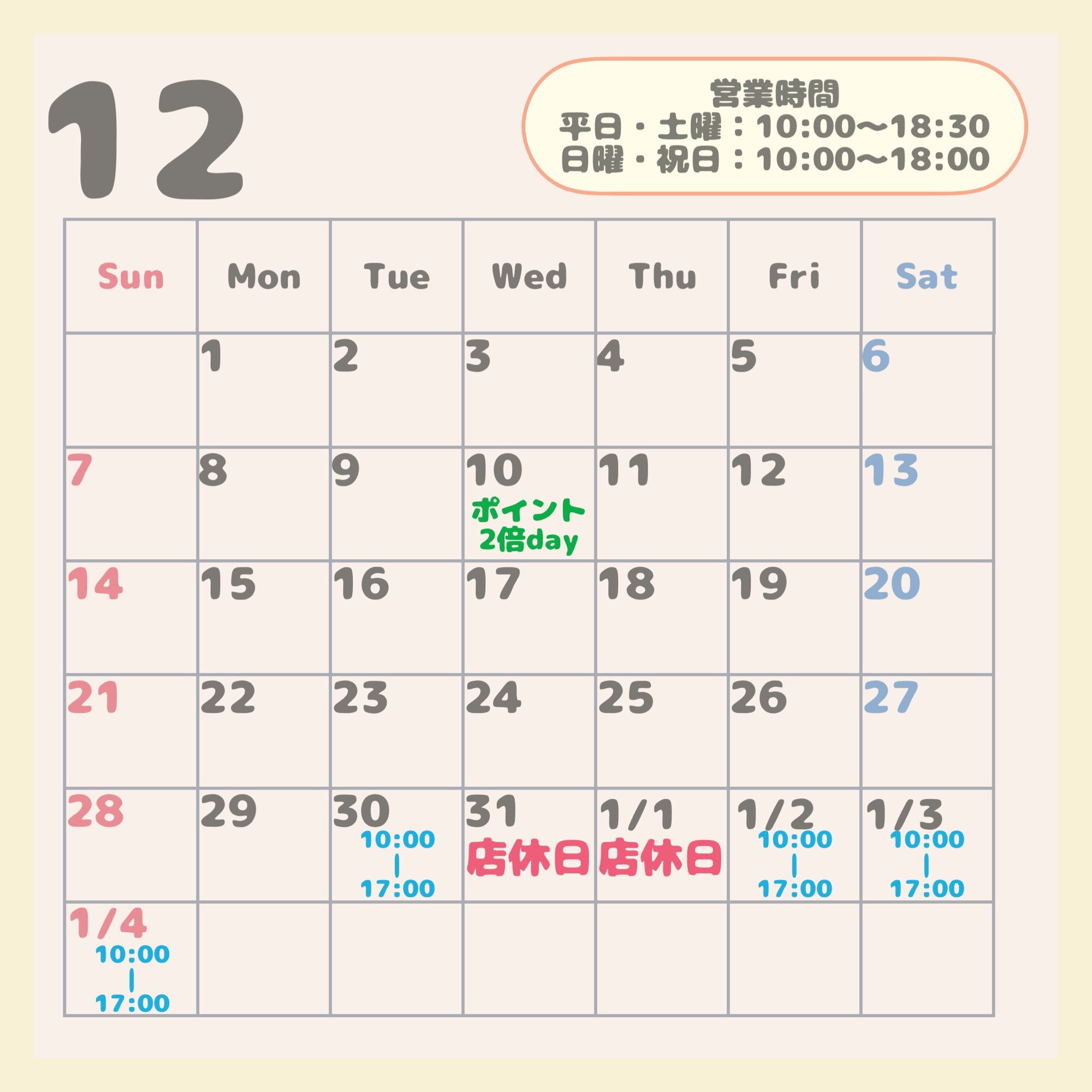 【📢年末年始の店休日と営業時間のお知らせ📢】