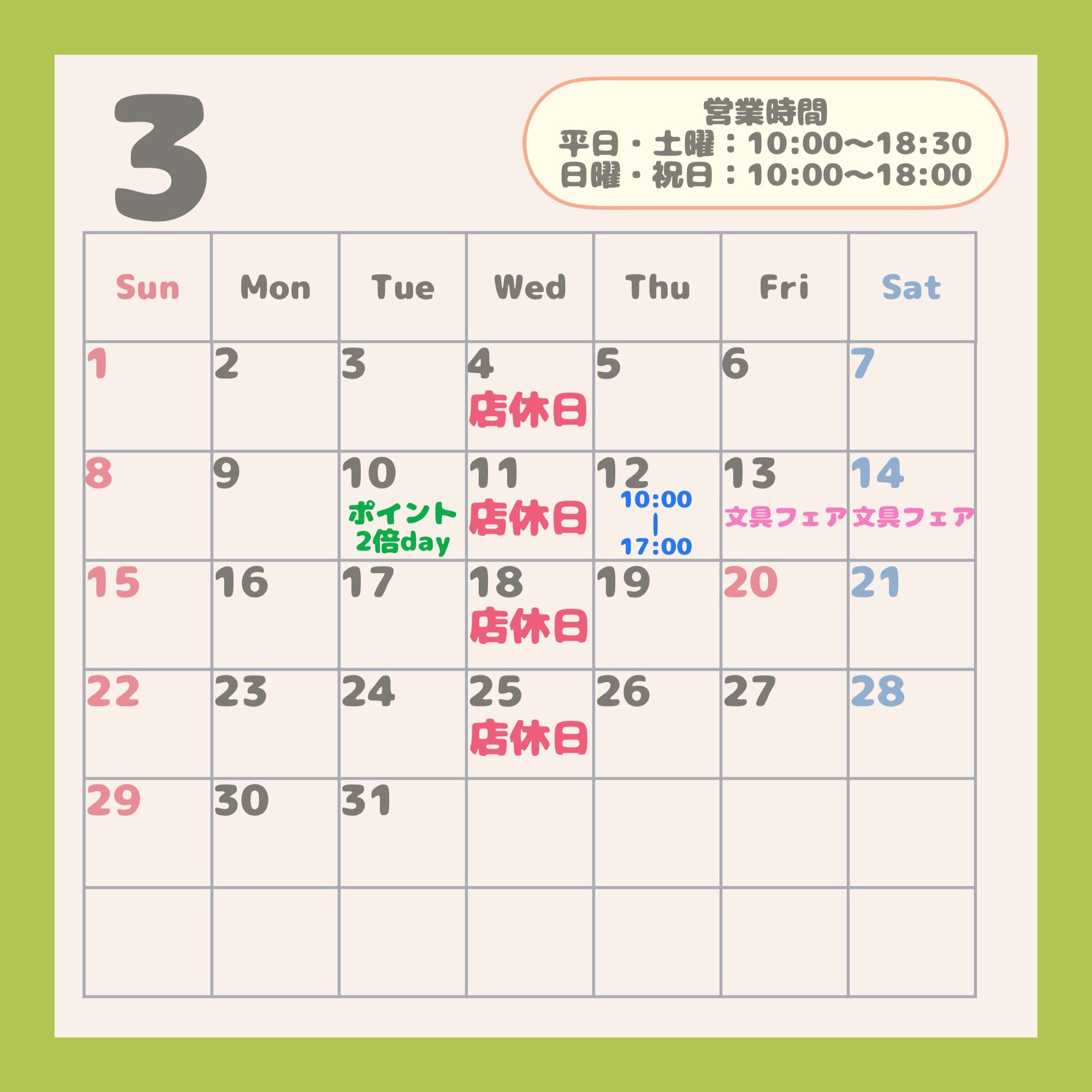 【📢3月の店休日のお知らせ📢】