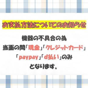 当店でのお支払い方法ですが、機器の不具合の為当面の間