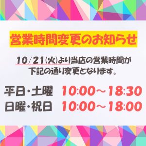 Concept What's new Sakamoto Instagram Access 0246-24-1123 平日/10:30-19:00 日祝/10:30-18:00 What's new 新着情報 2025.10.03 【📢営業時間変更のお知らせ】 10/21(火)より当店の営業時間が変更となります。 平日・土曜:10:00〜18:30 日曜・祝日:10:00〜18:00 今後も皆様のたくさんのご来店をお待ちしております🥰💘 PREVIOUS NEXT